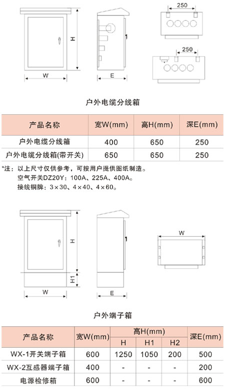 關(guān)于不銹鋼配電箱的知識前面也整理了不少,接下來主要分享配電箱各類產(chǎn)品,讓你更直觀的了解不銹鋼配電箱哦。今天主講不銹鋼戶外端子箱、分線箱用途及安裝尺寸: