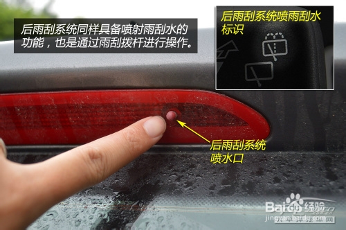 與前雨刮相比,后雨刮的功能就簡單得多了,只具備單一擺動頻率及噴水功能。